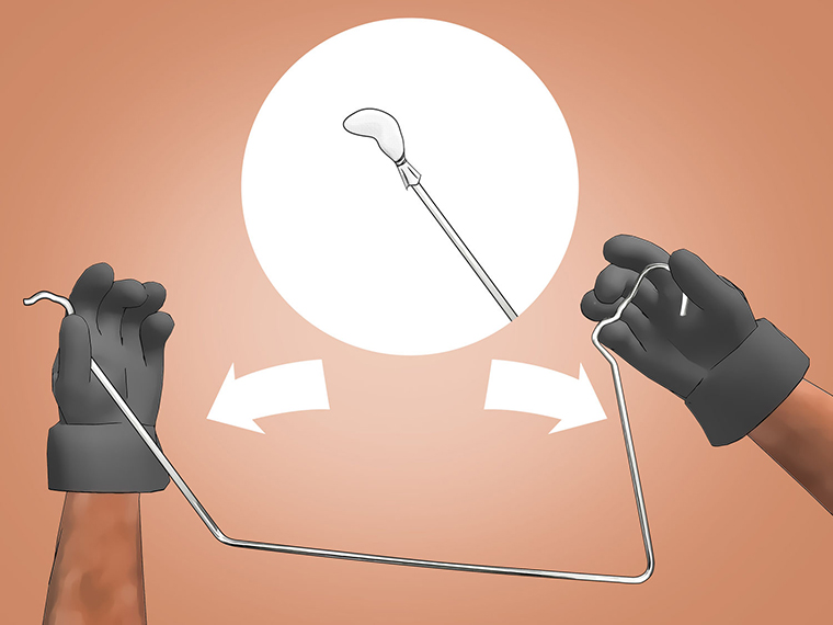 Một chiếc móc phơi quần áo cũng có thể làm thông tắc bồn cầu nhà bạn. Bạn hãy duỗi móc phơi như hình, bao đầu móc thật chắc chắn bằng miếng giẻ nhỏ để tránh trường hợp giẻ bị bung khi đang thao tác.